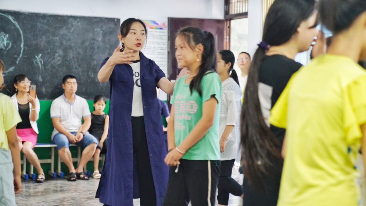 游本昌女儿游思涵正在给山区孩子上戏剧教育课。